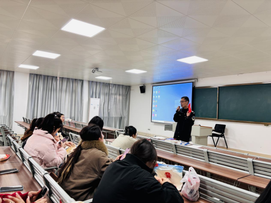 活动伊始,教工第二党支部书记刘畅老师热情地向同学们介绍了莅临现场的杜集区司法局工作人员。随后,杜集区社区矫正局副局长任荣登台,深入剖析了当下新型的社区矫正执行情况。任局长结合实际案例,言辞恳切地告诫同学们,务必树立起牢固的法治观念,始终做一名尊崇法律、严守法律的好公民。